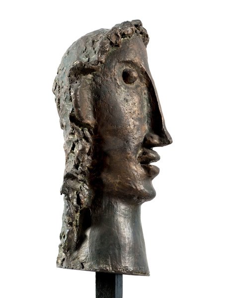 Streamlined bronze portrait reduces feminine beauty to essential geometric forms, showing influence of both classical sculpture and modern primitivist aesthetics.
