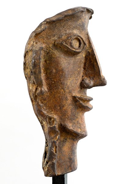 Exaggerated features in bronze reveal the influence of African art on Derain's sculptural work, emphasizing expressive distortion over naturalistic representation.