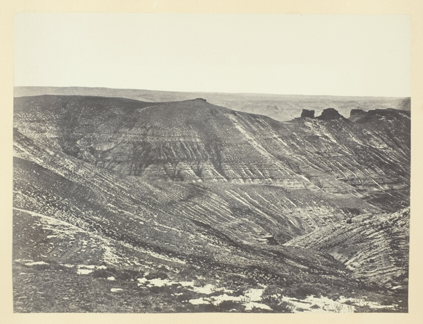 Captured during Russell's documentation of the Union Pacific Railroad's westward expansion, the albumen print showcases the photographer's ability to render the dramatic geological formations of Wyoming Territory with remarkable clarity and tonal range.
