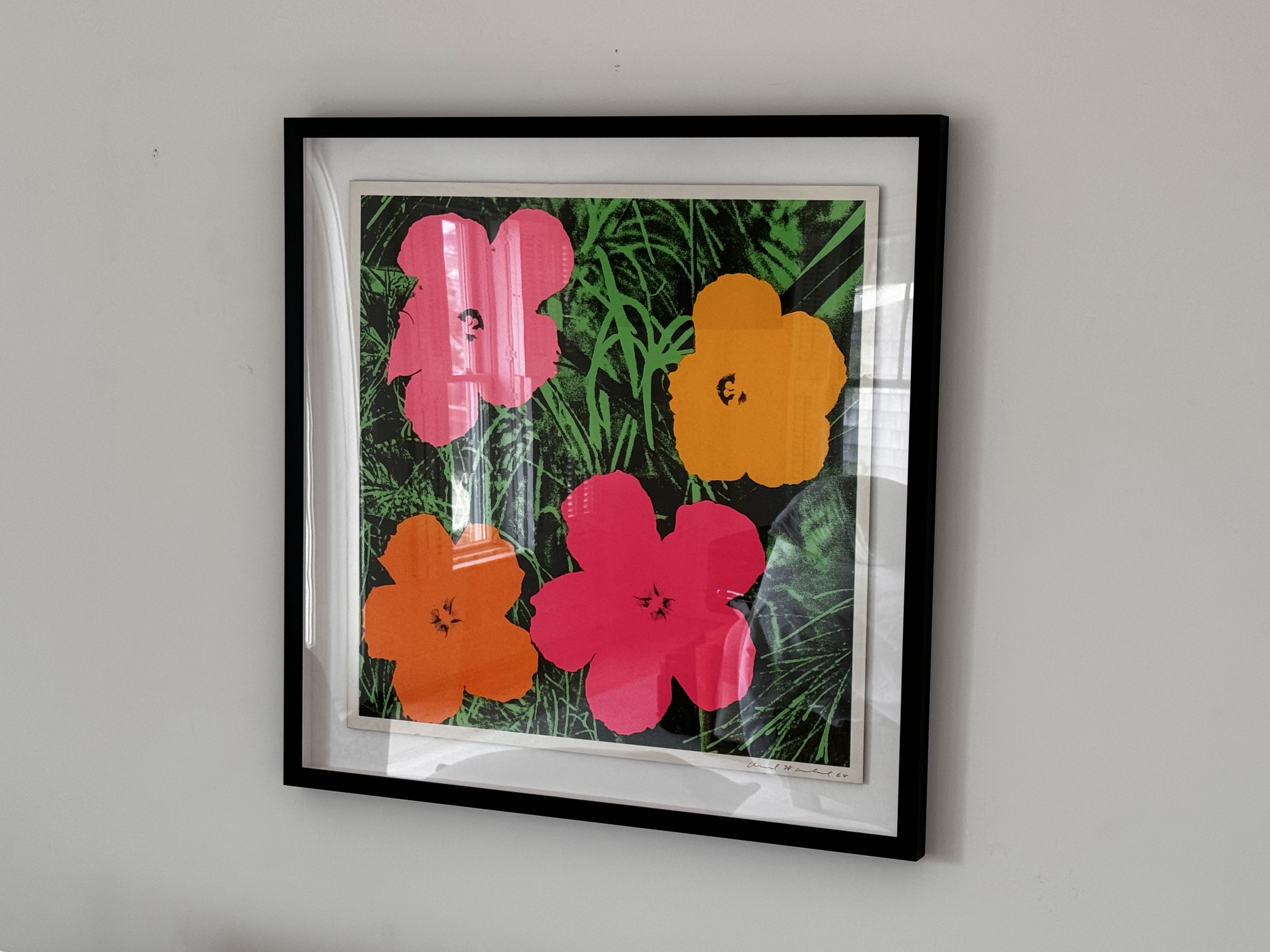 From Warhol's iconic 1964 Flowers series, this screenprint exemplifies the artist's transformation of found imagery into pop art statements that blur the boundaries between commercial and fine art. Measuring 60.96 × 60.96 cm and signed by the artist, the work represents one of 300 impressions from this celebrated edition. Acquired from Revolver and maintained in excellent condition, this example demonstrates Warhol's masterful use of the screenprint medium during his most productive decade.