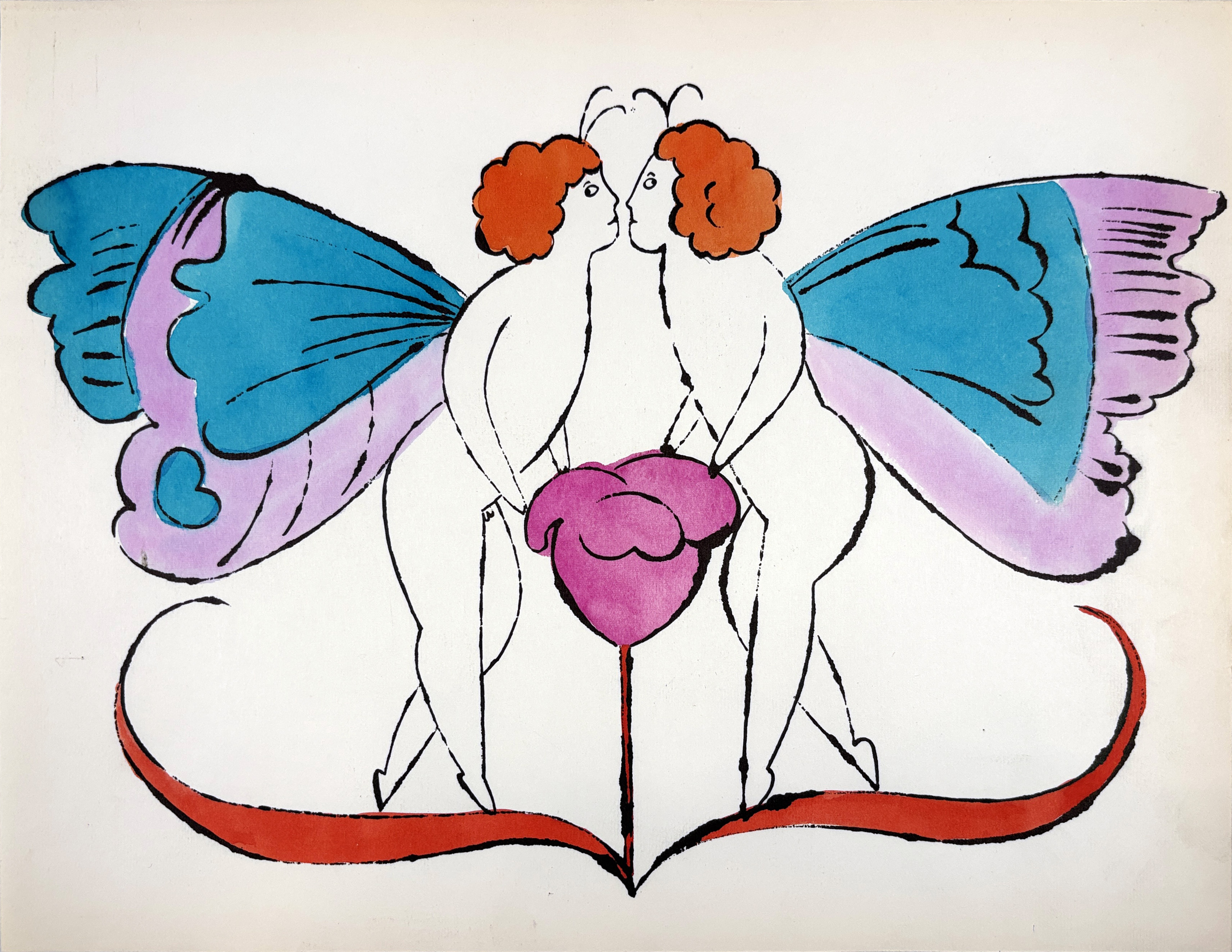 This early lithograph with watercolor represents Warhol's pre-Pop Art commercial illustration period, showcasing his delicate hand-colored technique and whimsical subject matter that preceded his iconic silkscreen works. The piece demonstrates his skilled draftsmanship and intimate scale, contrasting sharply with the mass-production aesthetic that would later define his career.