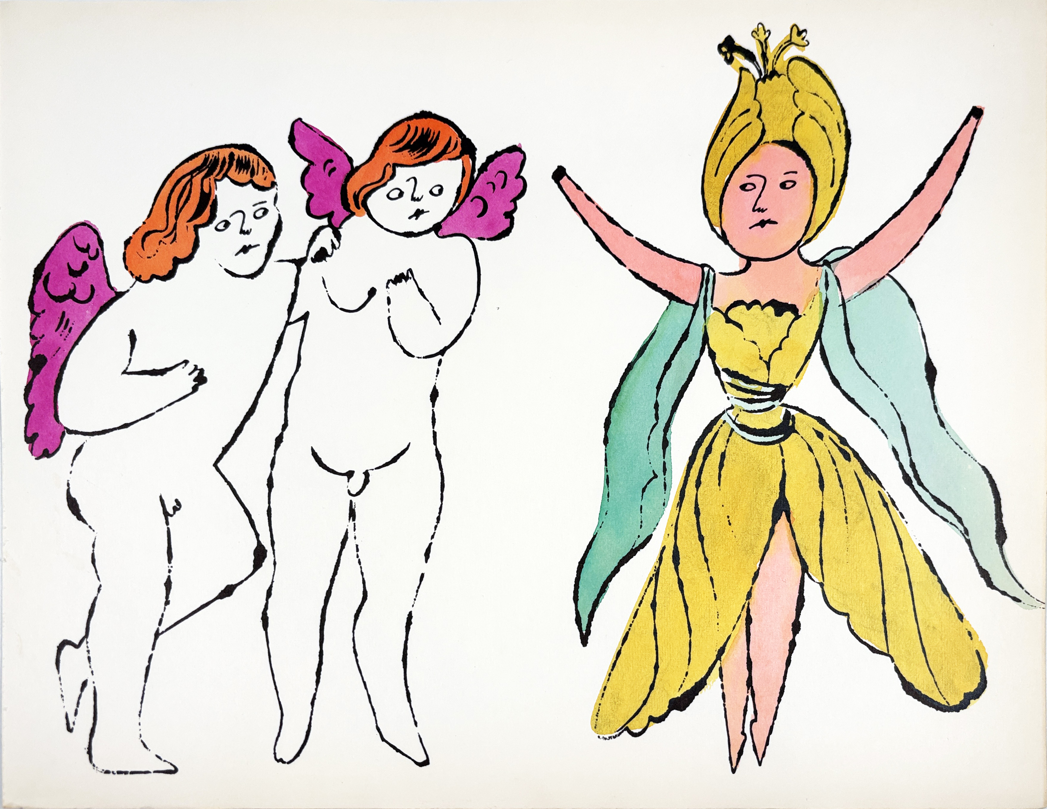 This early lithograph with watercolor demonstrates Warhol's pre-Pop Art sensibility, created during his commercial illustration period before his iconic silkscreen works. The piece showcases his delicate line work and hand-applied color techniques, representing a significant departure from the mass-production aesthetic that would later define his career.