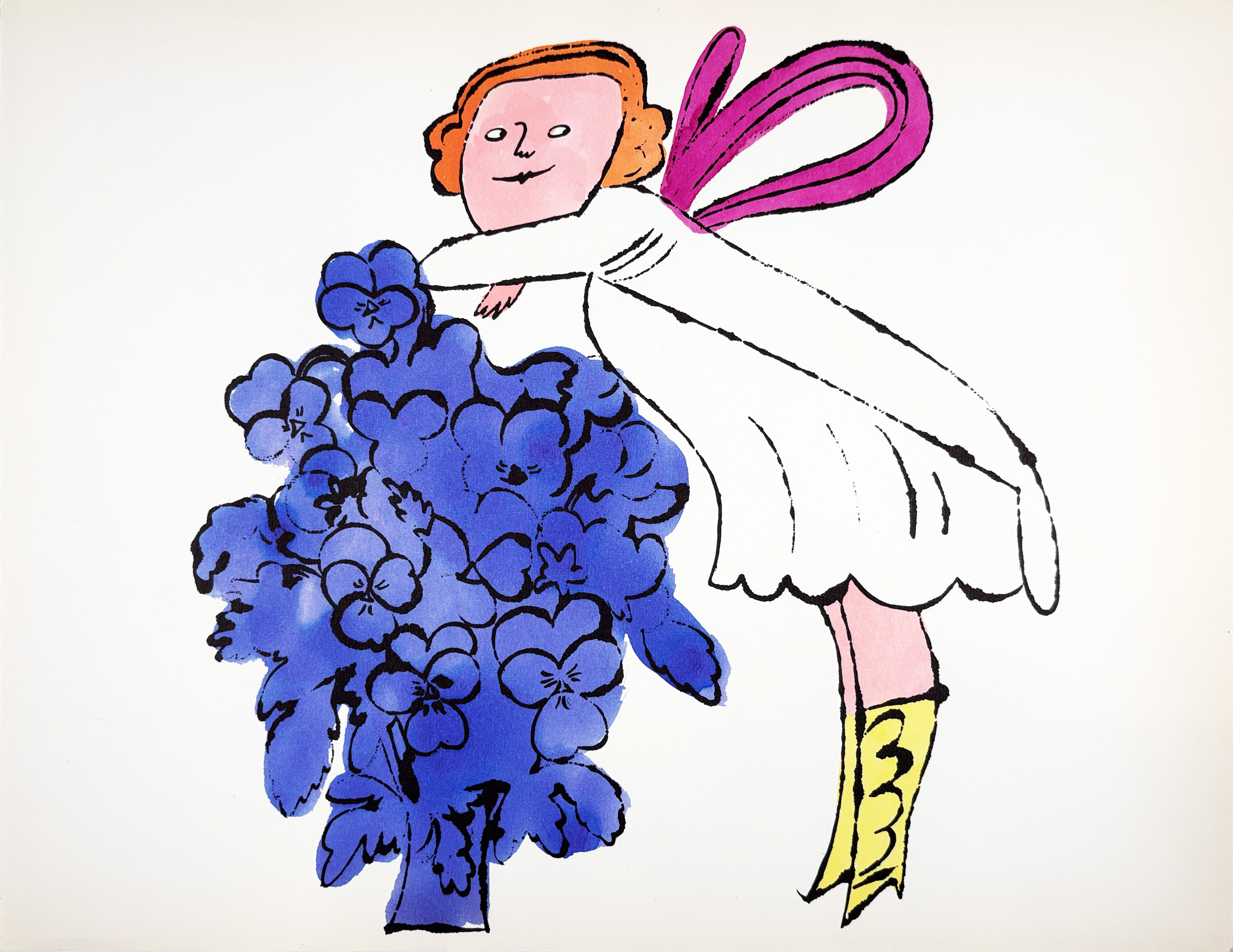 This early lithograph with watercolor demonstrates Warhol's pre-Pop Art commercial illustration style, created during his successful career as a Madison Avenue graphic designer. The whimsical garden imagery and delicate hand-coloring technique contrast sharply with the mechanical silkscreen processes that would later define his iconic celebrity portraits and consumer product series.