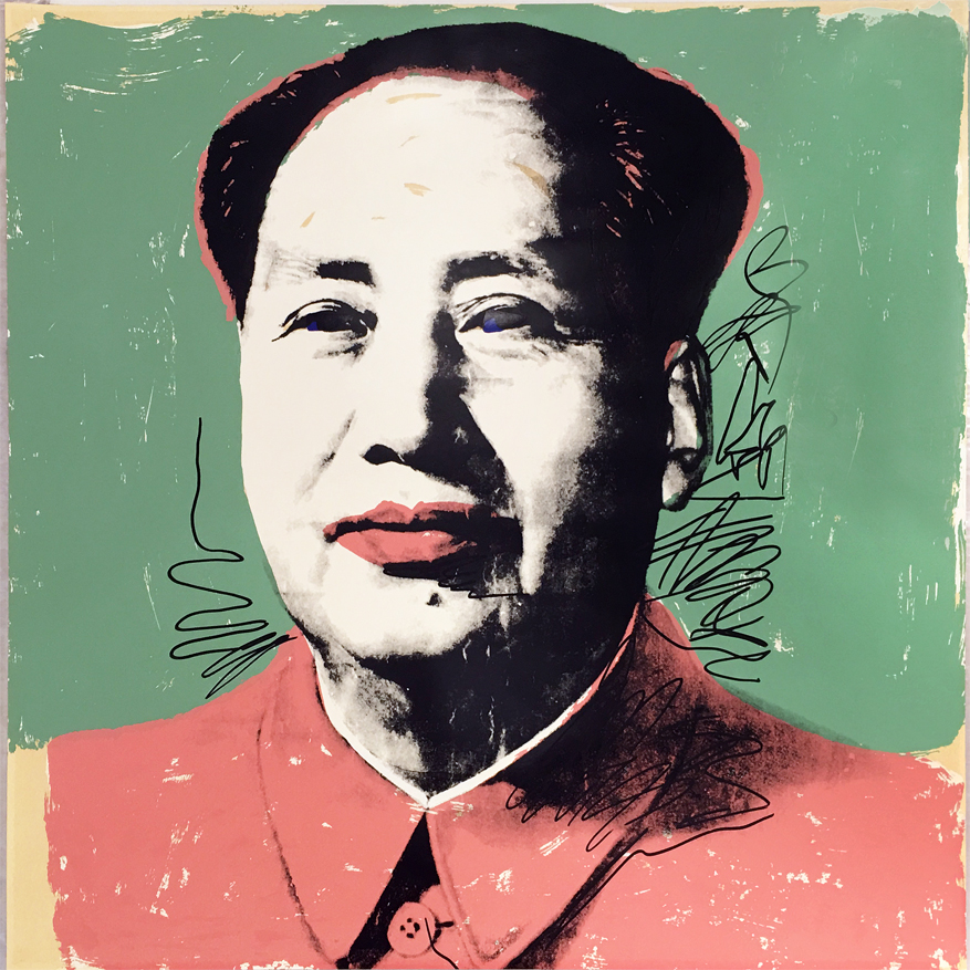 This iconic screenprint transforms the official portrait of Chinese leader Mao Zedong through Warhol's signature pop art aesthetic, applying bold commercial printing techniques to challenge traditional notions of political imagery. Part of a larger series exploring celebrity and power, the work exemplifies Warhol's ability to democratize and commodify even the most politically charged subjects.