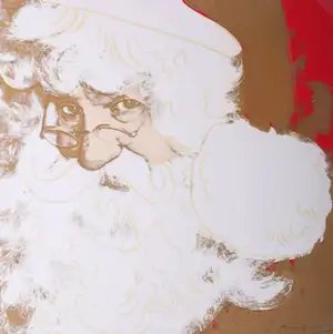 Andy Warhol's 1981 screenprint reimagines Santa Claus as a Pop Art icon, employing his signature technique of mass production and commercial printing methods to elevate a holiday figure into fine art. The work incorporates diamond dust, a material Warhol favored during this period to create luminous, jewel like surfaces that reference both fine art tradition and consumer culture aesthetics. Published by Ronald Feldman Fine Arts, this numbered edition of 190 exemplifies Warhol's exploration of American mythology and the commodification of cultural symbols through repetition and mechanical reproduction.