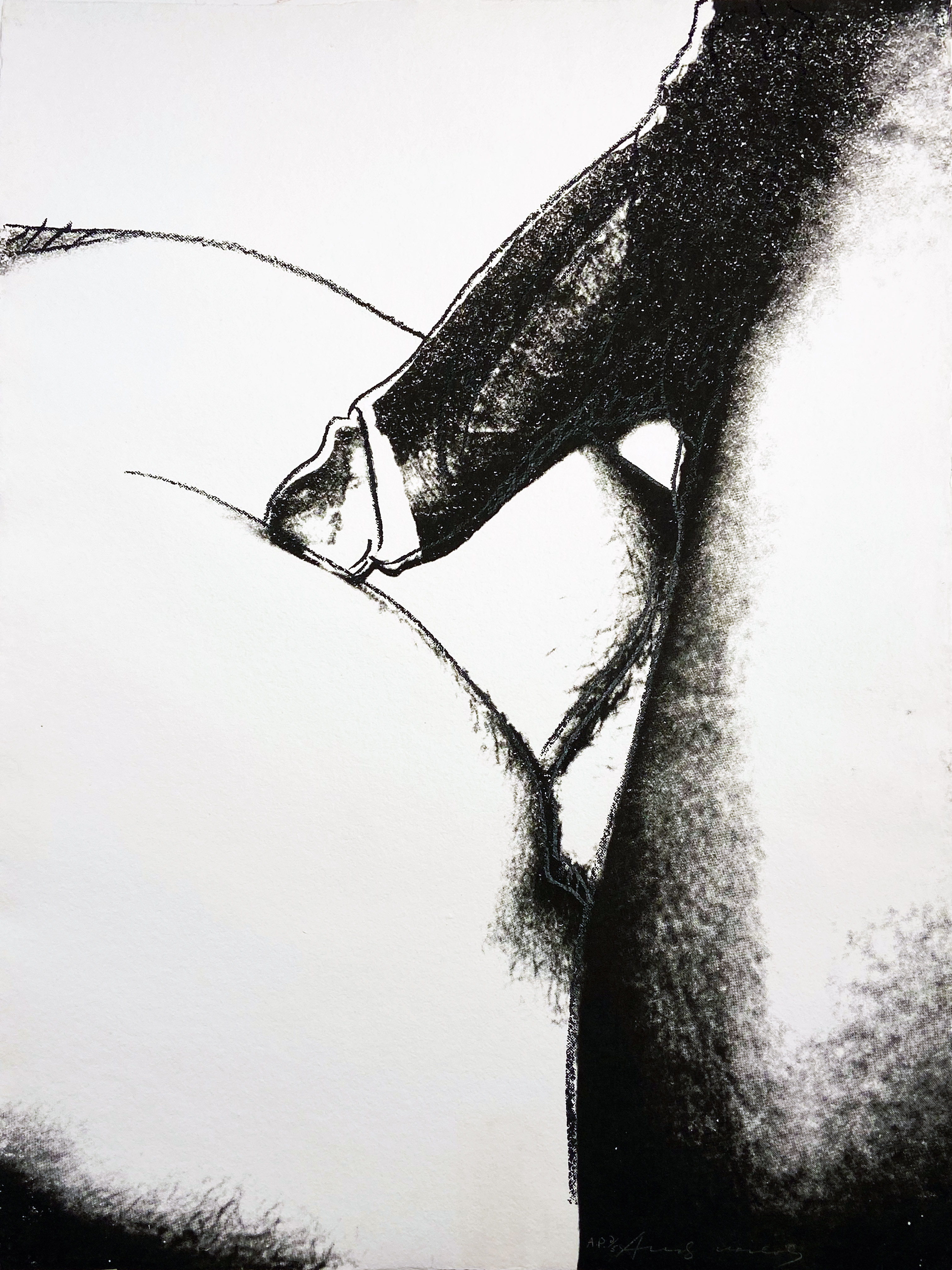 This screenprint exemplifies Warhol's late 1970s exploration of explicit sexual imagery, applying his signature mechanical reproduction techniques to provocative subject matter. Part of a limited series, the work demonstrates Warhol's continued push against societal taboos while maintaining his characteristic detached, commercial aesthetic through the screenprinting process on handmade paper.