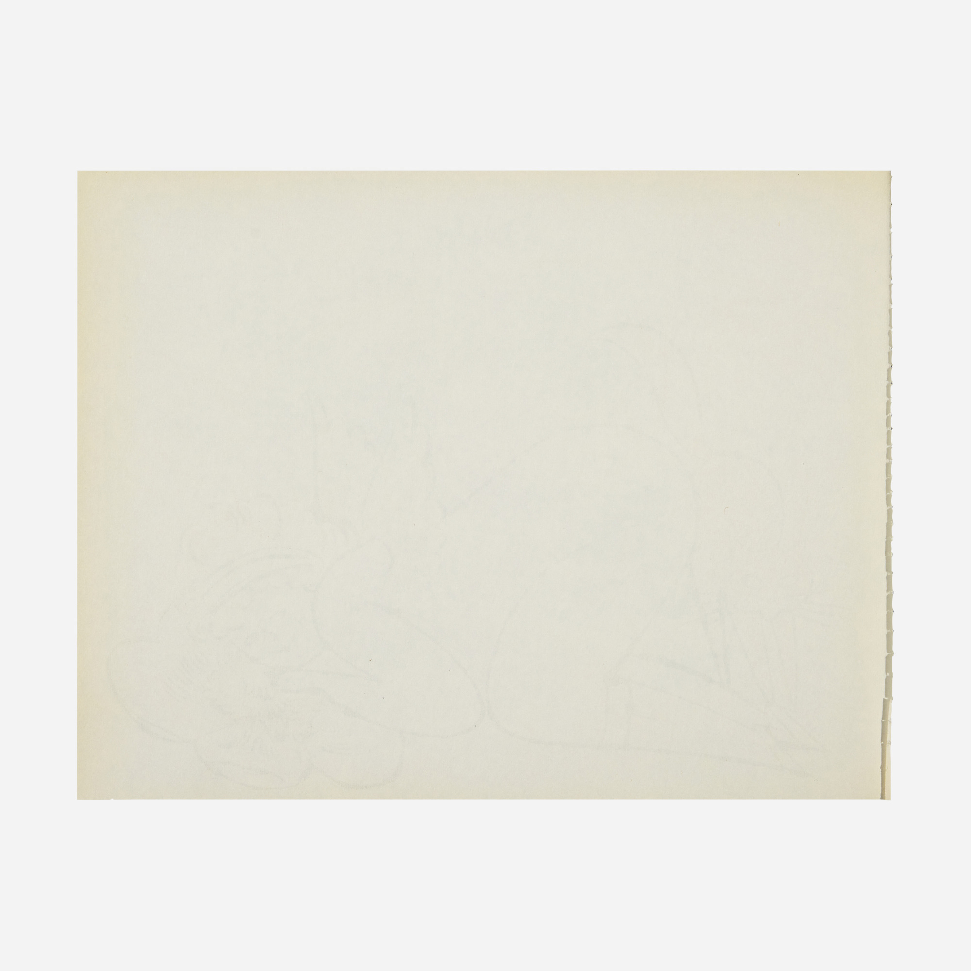 This offset lithograph with hand-coloring comes from Andy Warhol's In The Bottom of My Garden portfolio, created in 1956. The work exemplifies Warhol's early exploration of printmaking techniques before his rise to fame in the 1960s. The hand-coloring adds a personal, artisanal quality to the mechanical reproduction process. The piece demonstrates Warhol's interest in combining commercial printing methods with fine art practices. This portfolio work represents a transitional moment in the artist's career.