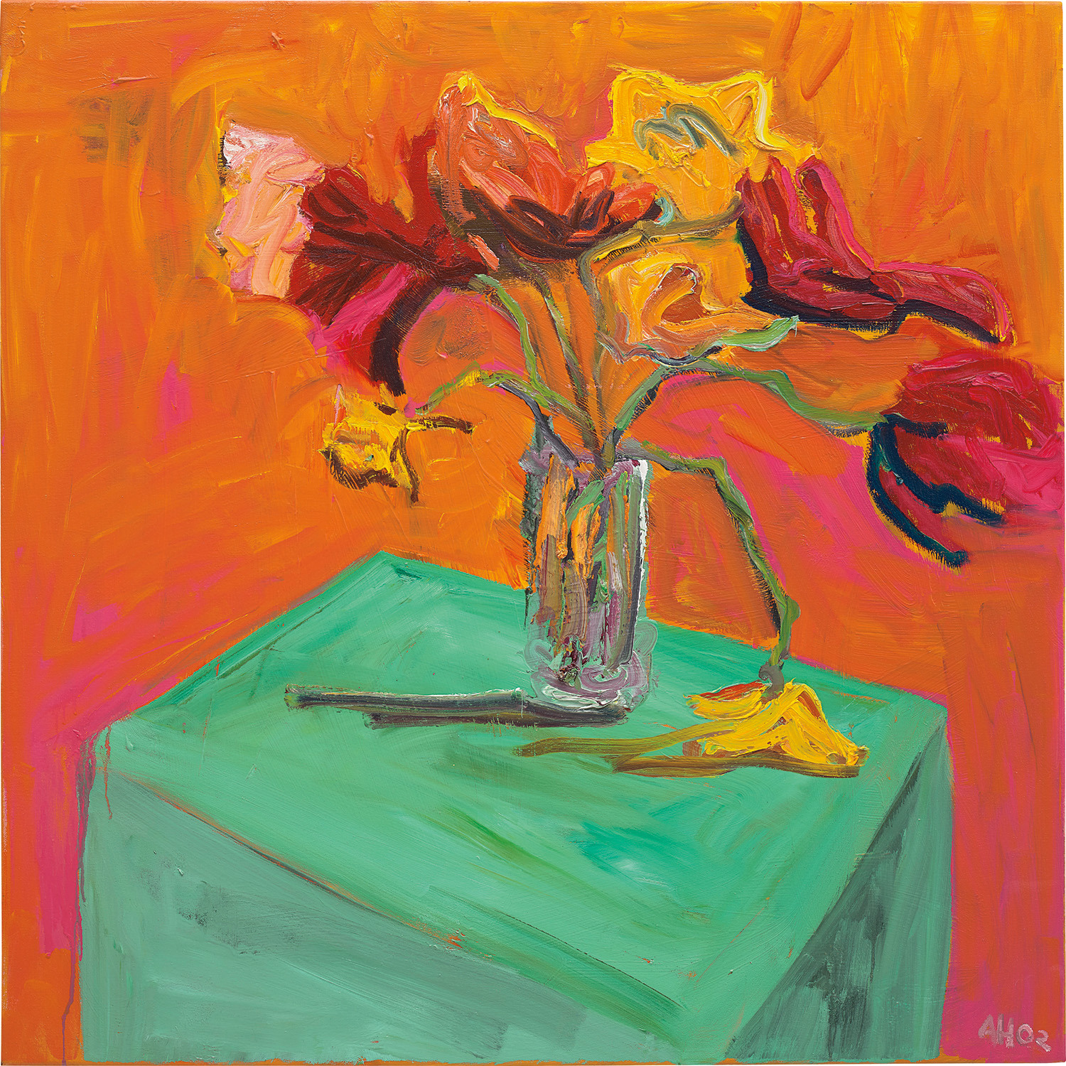A vibrant and gestural oil painting by Anton Henning, *La rencontre, No 3* showcases the German artist's signature blend of abstraction and figuration, merging bold, expressive brushwork with a playful yet sophisticated visual language. The work reflects Henning's deep engagement with art history and modernist traditions, reinterpreting familiar tropes of encounter and interaction through a dynamic and sensuous use of color and form.