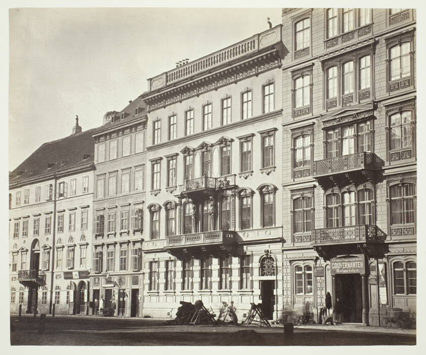 Capturing a residence in Vienna's quieter neighborhoods, this photograph extends beyond the famous Ring road to document the broader urban landscape of the imperial capital.