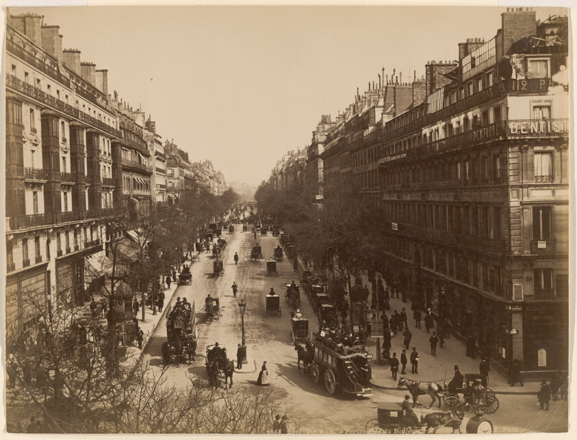 Preserved through albumen printing technology, this image captures the bohemian quarter of Paris during a transformative period in the city's urban development.