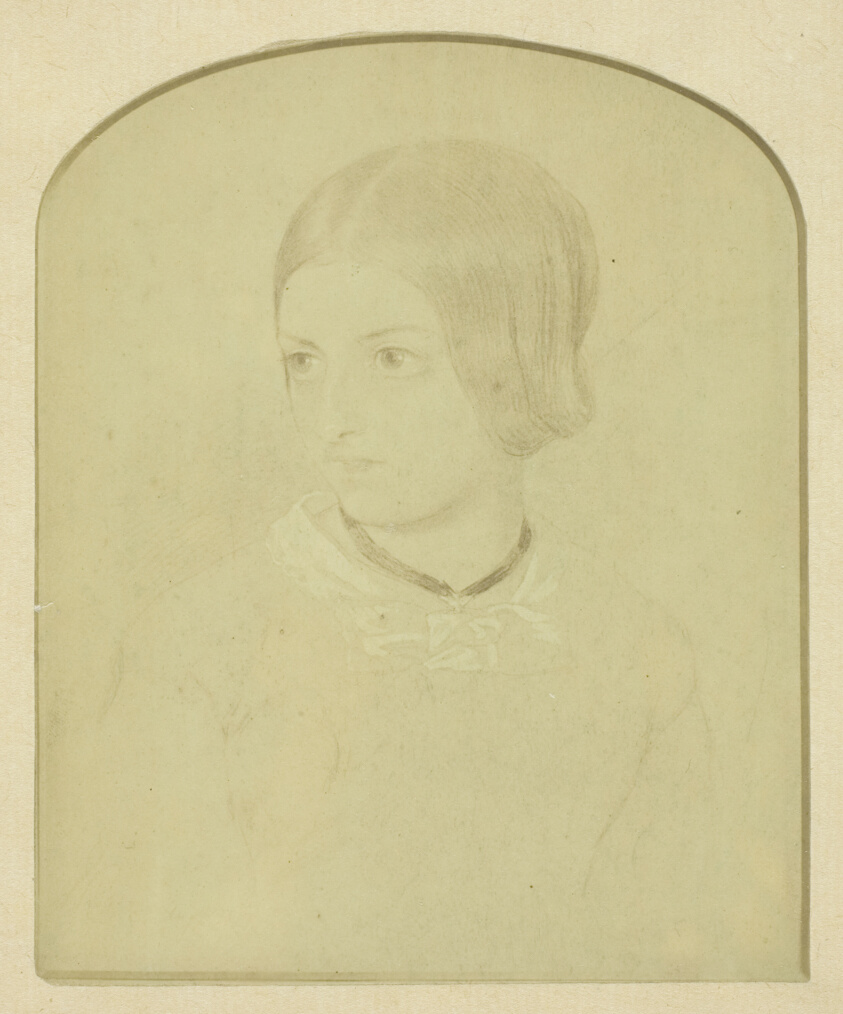 Bridging drawing and photography, this albumen print of an earlier sketch illustrates the complex relationship between traditional and photographic portraiture in the Victorian era.