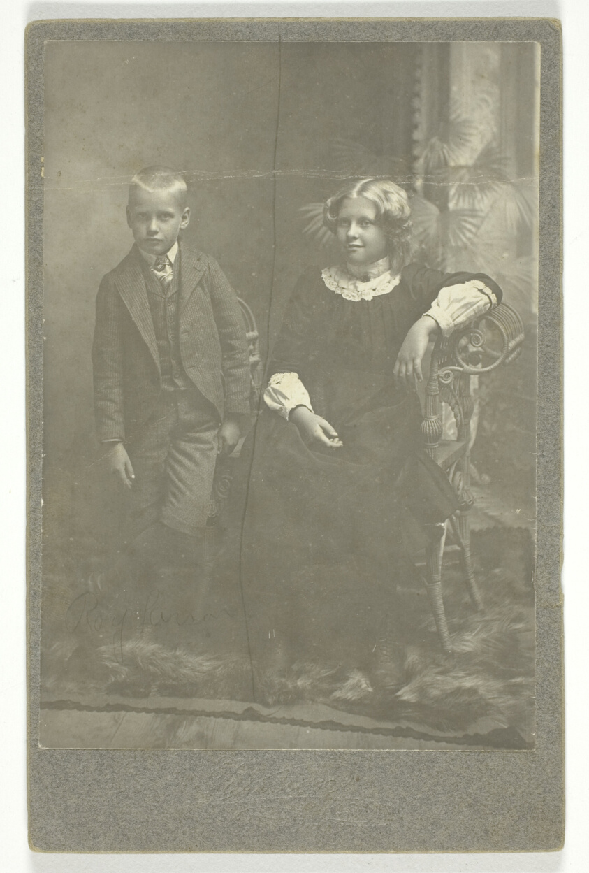 Gelatin silver printing, an advancement over earlier photographic processes, captures two children with improved tonal range and sharper detail than previous techniques allowed.