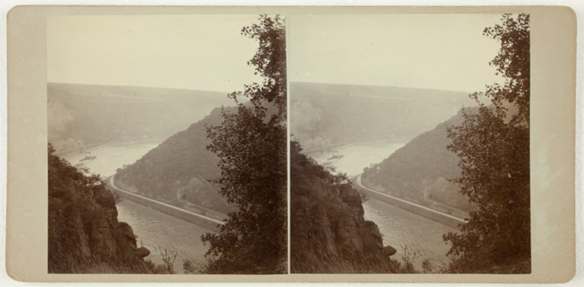 Photographed from Germany's famous Lorelei rock along the Rhine, dramatic river valley views like these helped establish landscape photography as both documentary record and artistic expression.