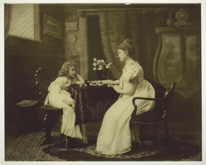 Mounted on glass in an unusual presentation, this late Victorian photograph offers an intimate glimpse into domestic leisure activities of the period.