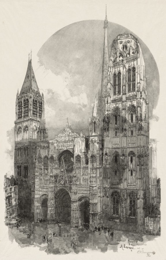 Gothic architecture receives meticulous treatment through wood engraving, as Lepère applies his technical precision to one of France's most celebrated cathedrals.
