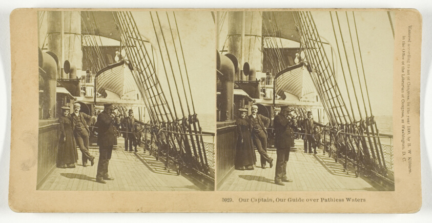 Maritime adventure unfolds in three dimensions as Kilburn captures the romance of sea travel, reflecting the era's fascination with exploration and the reliability of skilled navigation.