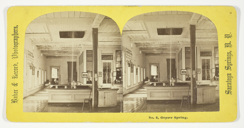 Part of an extensive documentation of America's premier 19th-century resort destination, this stereo view captures the natural mineral springs that drew fashionable society to upstate New York.
