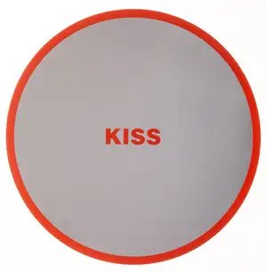 Barbara Kruger's "Untitled 2KISS" is a 2024 screenprint on mirror polished steel disc that transforms the artist's signature text based visual language into a three dimensional object. The work, produced by the Serpentine Gallery in an edition of 300, measures 300mm in diameter and comes housed in its original fitted box, exemplifying Kruger's continued exploration of how language and image interact within contemporary consumer and institutional spaces. By employing reflective steel as her substrate, Kruger extends her practice of interrogating perception and meaning, allowing viewers to see themselves implicated in the work's message through the mirror's surface.