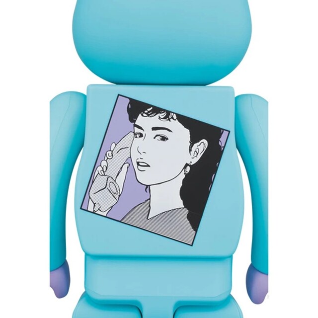 This collectible BE@RBRICK figure represents a collaboration between the iconic toy brand and artist KYNE, produced in 2019. The 400 percent scale enlargement creates an imposing presence while maintaining the character's recognizable silhouette and proportions. The plastic medium and detailed design showcase contemporary toy art and designer collectible culture. KYNE's artistic intervention transforms the standard bear form into a unique expression. This piece bridges fine art, popular culture, and contemporary collectible practices.