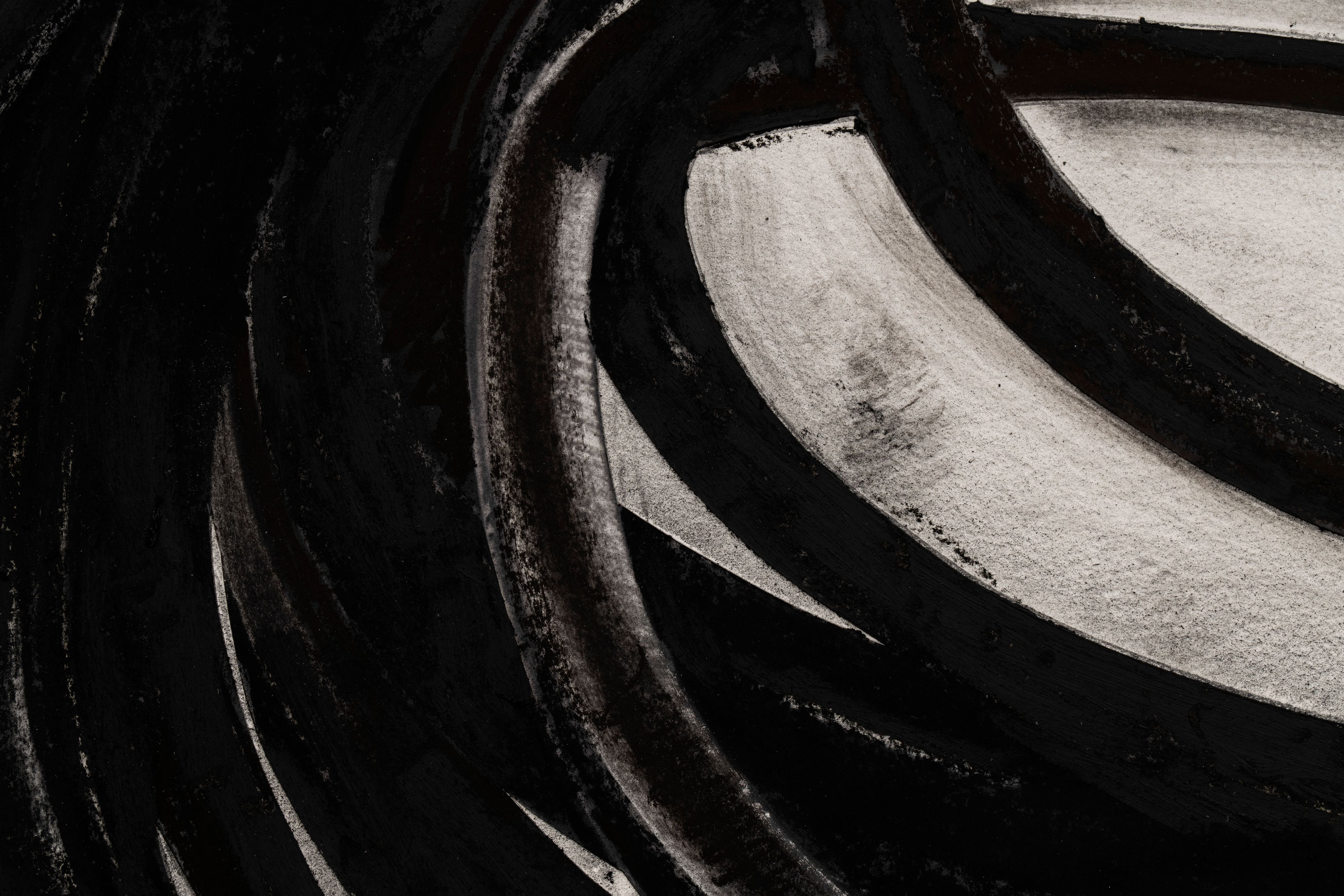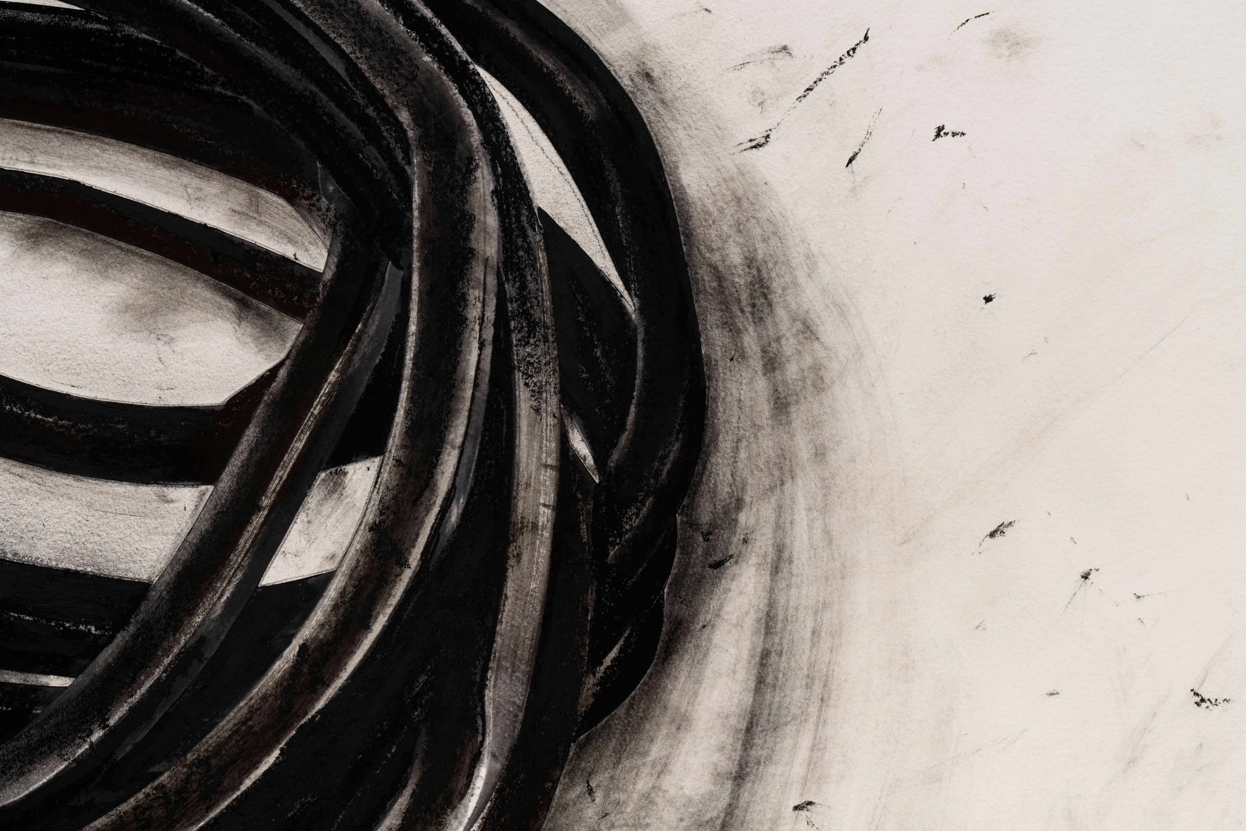 A mixed media work on paper combining oilstick, graphite, and collage to create dynamic abstract compositions. The indeterminate lines suggest movement and spontaneity characteristic of gestural abstraction.