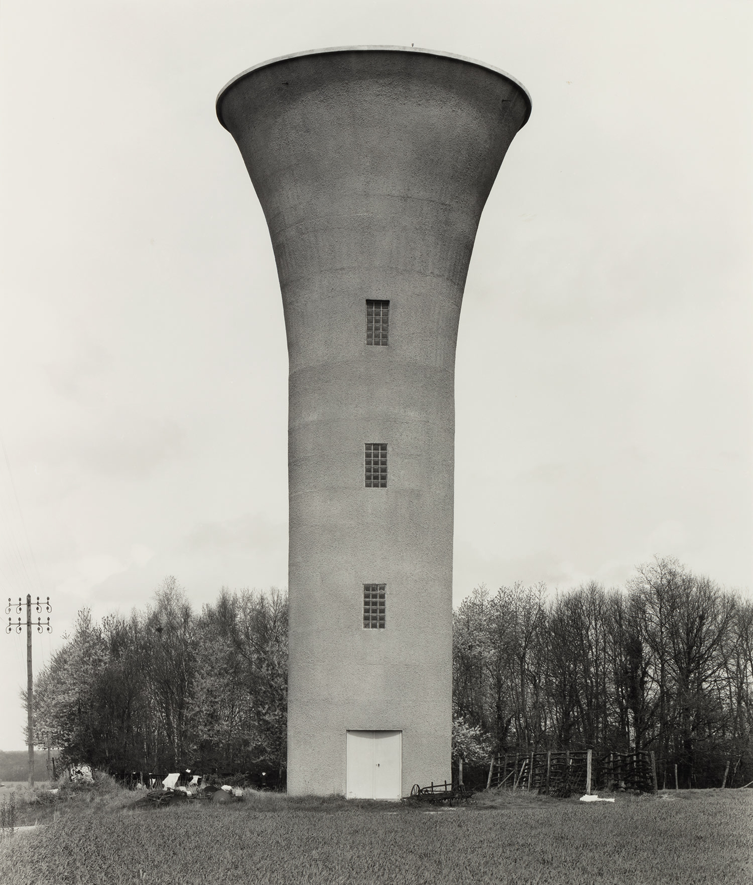 Part of the Bechers' monumental typological series documenting industrial structures across Europe. This gelatin silver print of a water tower in France exemplifies their systematic, objective approach to architectural photography.
