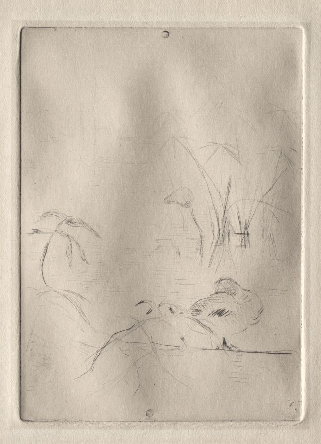 Executed in Morisot's characteristic loose, sketchy style, combining etching and drypoint techniques to capture a simple subject with remarkable spontaneity and charm.