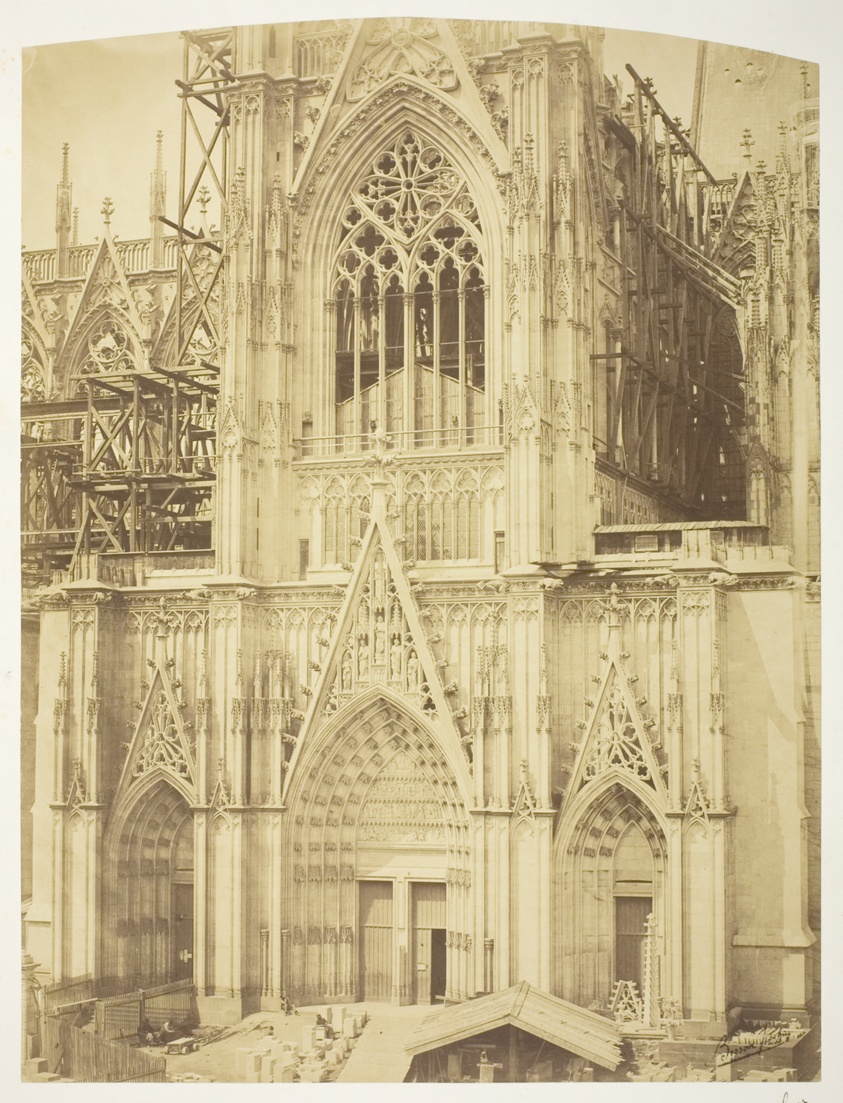 Documents the soaring Gothic architecture of Germany's most famous cathedral, part of the Bisson brothers' international survey that helped establish photography's role in architectural scholarship.