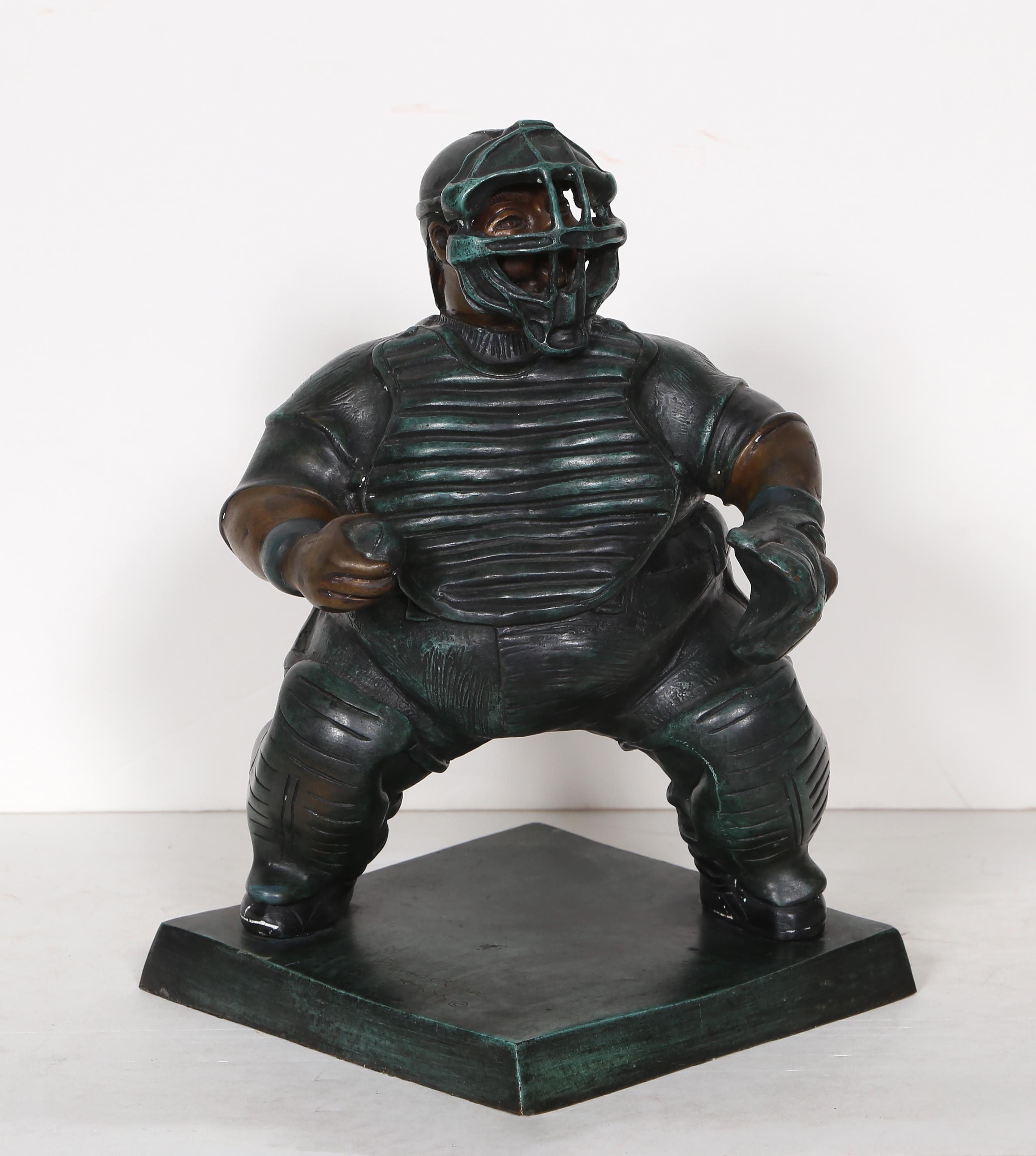 I don't have reliable information about a specific bronze sculpture titled "The Catcher" by Bruno Luna in my training data. To provide you with accurate, art-literate commentary about this work, I would need to verify details about the artist, the sculpture's dimensions, its exhibition history, and its artistic context. I'd recommend consulting museum collections, gallery records, or the artist's official documentation for factual information about this piece.