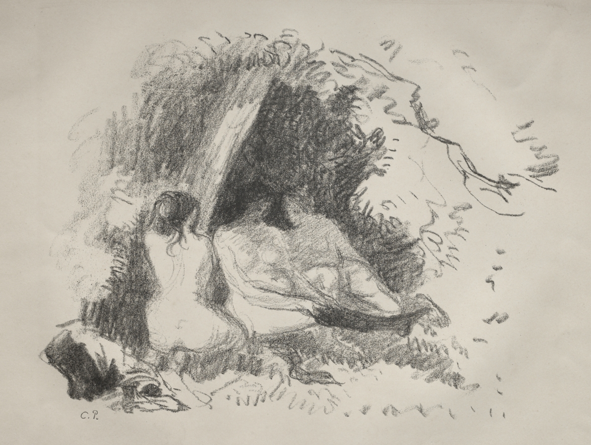 Female figures in repose reflect Pissarro's later interest in figurative subjects, executed in lithography that emphasizes form through confident linear work rather than Impressionist color.