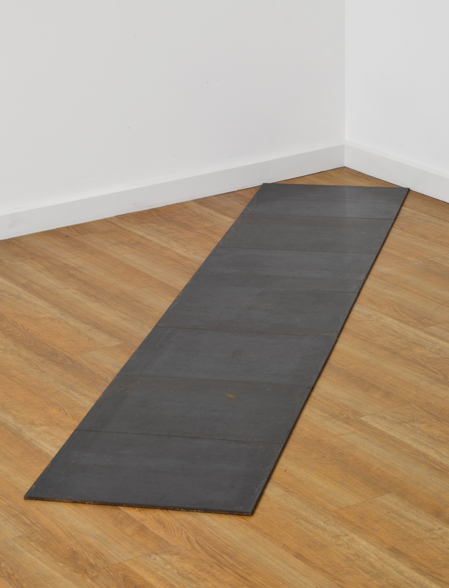 Carl Andre's 1971 work 'Swipe' exemplifies his minimalist approach to sculpture and spatial arrangement. The piece demonstrates his characteristic use of simple geometric forms to engage viewers with concepts of placement and perception.
