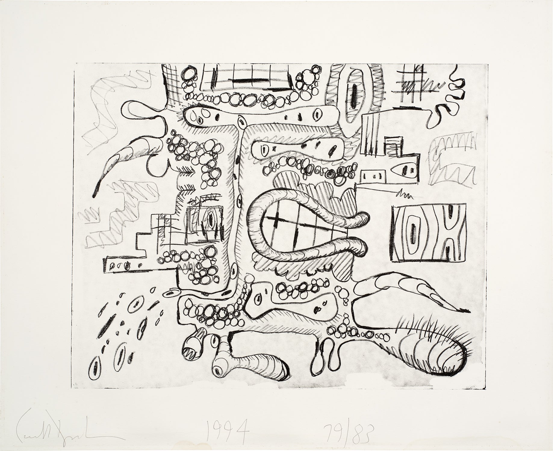 Carroll Dunham's self-titled work is a lithograph printed on Zerkall paper with full margins preserved. This print demonstrates the artist's characteristic style and printmaking technique.