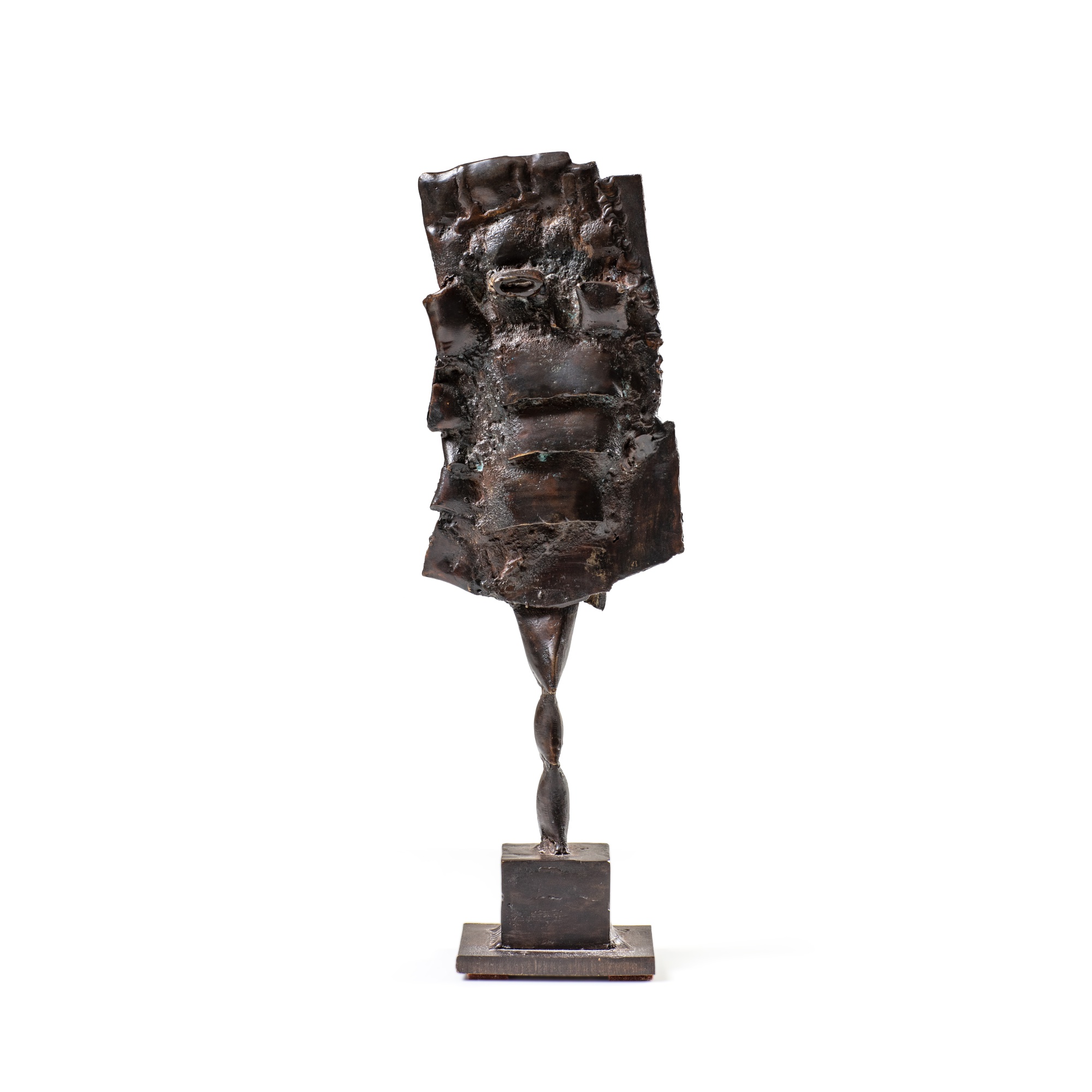 César's 1955 'Sculpture Plate' is a bronze work demonstrating the artist's geometric and minimalist approach. The piece represents César's exploration of form and material in mid-20th century sculpture.