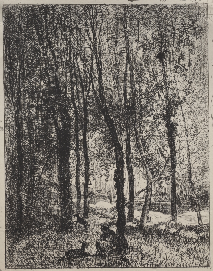 Created using cliché-verre, this figure study shows Daubigny's ability to integrate human subjects naturally into landscape settings.