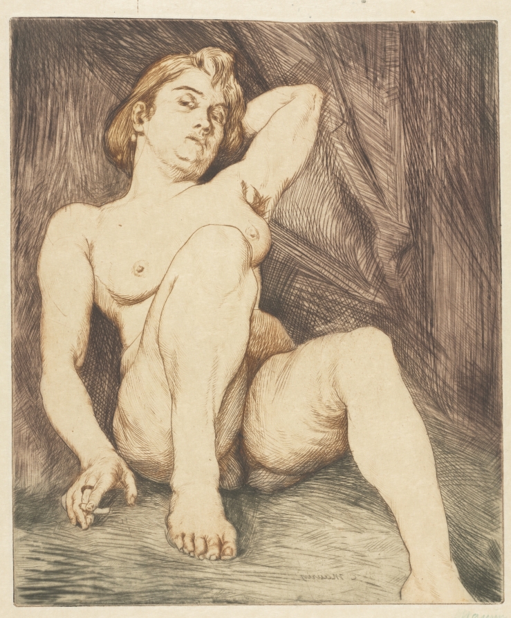 Multiple intaglio techniques combine to create subtle atmospheric effects in this contemplative scene, showcasing the artist's technical virtuosity in traditional printmaking methods.