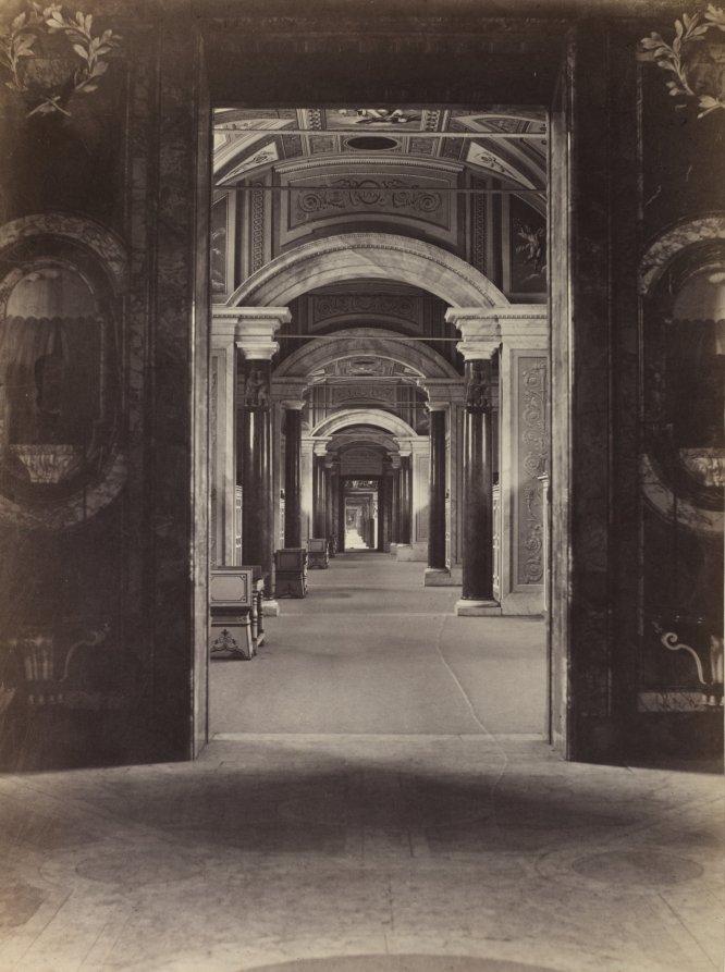 Created using the collodion negative process, this photograph demonstrates Soulier's mastery in capturing the grandeur of Vatican interiors during the early decades of architectural photography.