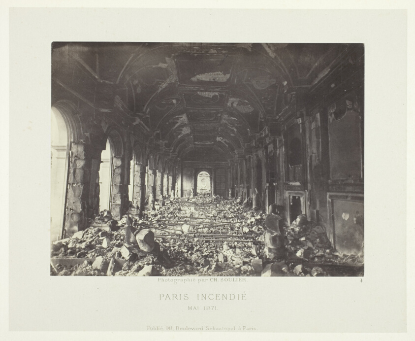 Interior devastation reveals the thoroughness of the Communards' destruction, with collapsed ceilings and debris creating an almost apocalyptic scene.