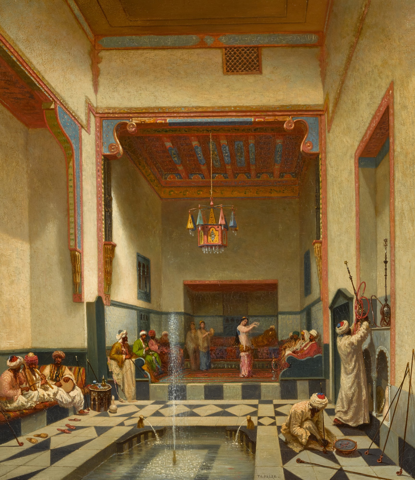 Entertainment, Cultural, French, Interior Scene, 19th Century, Orientalism, Narrative, Warm Tones, Figurative, Oil on Canvas