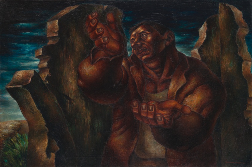 “Paint is the only weapon I have with which to fight what I resent,” Chicagoan Charles White observed, demonstrating his belief that art could be a force in promoting racial equality for African Americans. This painting of a man with outstretched hands emerging from a demolished structure draws its title from a 1936 novel about a rural white miner who experiences a political awakening and joins the proletarian struggle against capitalism. White transformed the protagonist into a black man who breaks free from a mountain of rubble, a hopeful image of the possibility of social change.