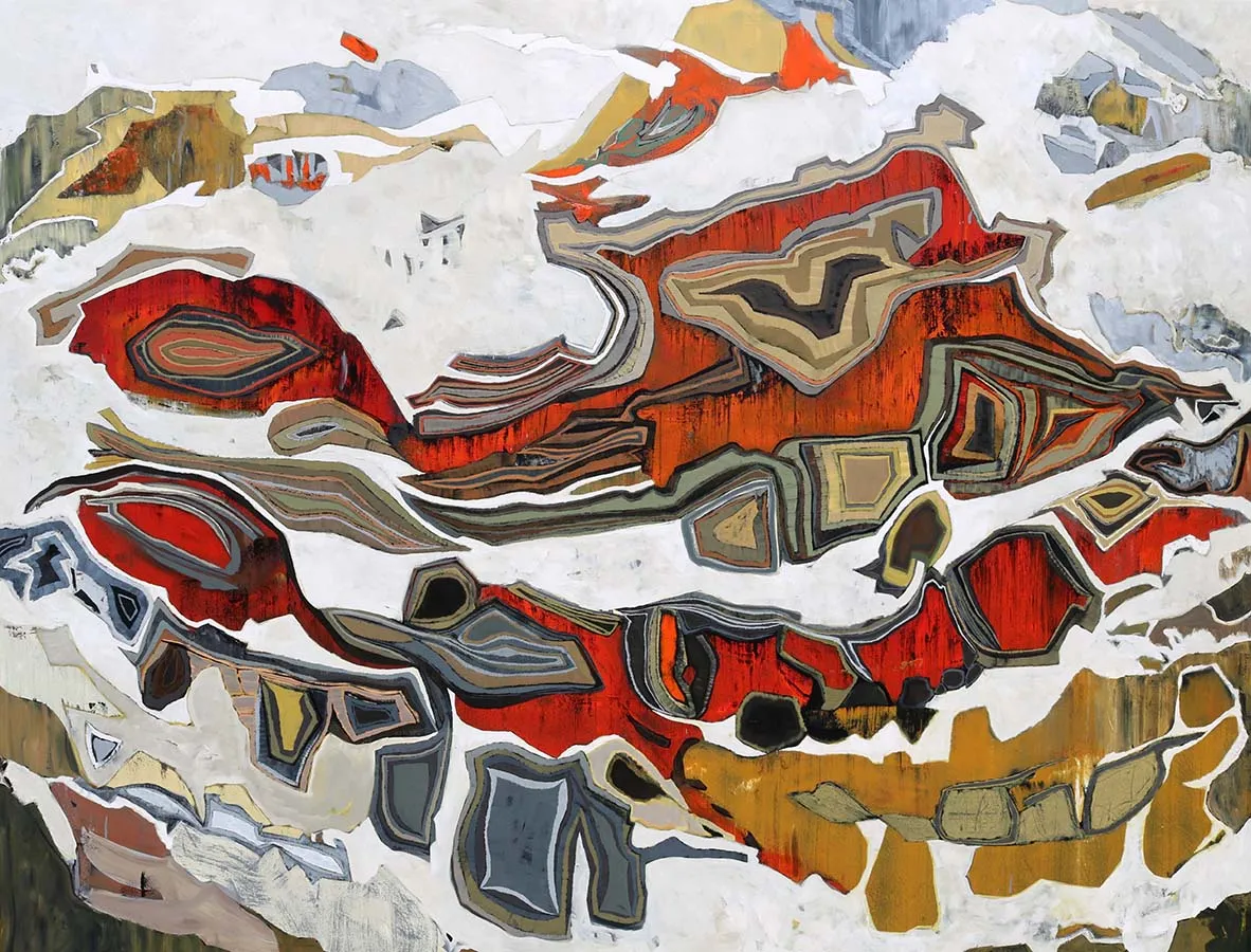 Kotor Bumi draws inspiration from international coastal and mountainous landscapes, translating them into abstract visual language through oil painting. The title references specific geographic locations, suggesting a global perspective on natural beauty and form. Layered brushwork and color modulation create a sense of atmospheric perspective and spatial recession. The composition balances representation and abstraction to evoke the essence of dramatic landscape geography.
