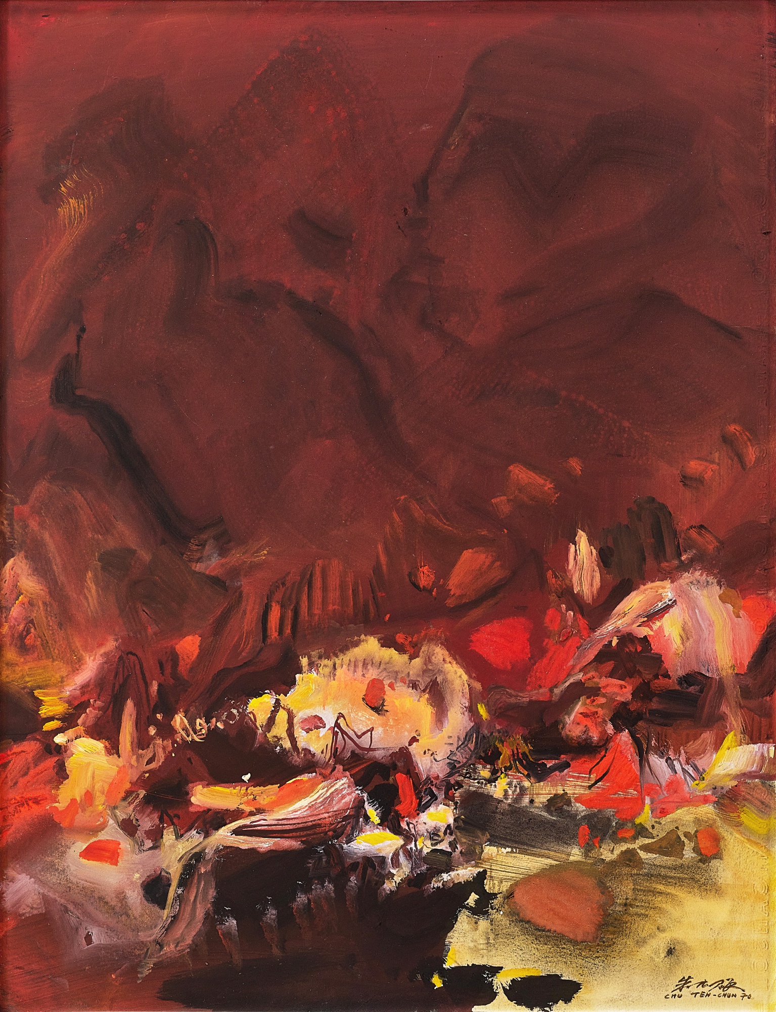 Chu Teh-Chun's 1970 gouache composition titled 'No. 341,' representing the artist's abstract exploration of form and color. The numerical title suggests this work is part of a larger series of investigations.