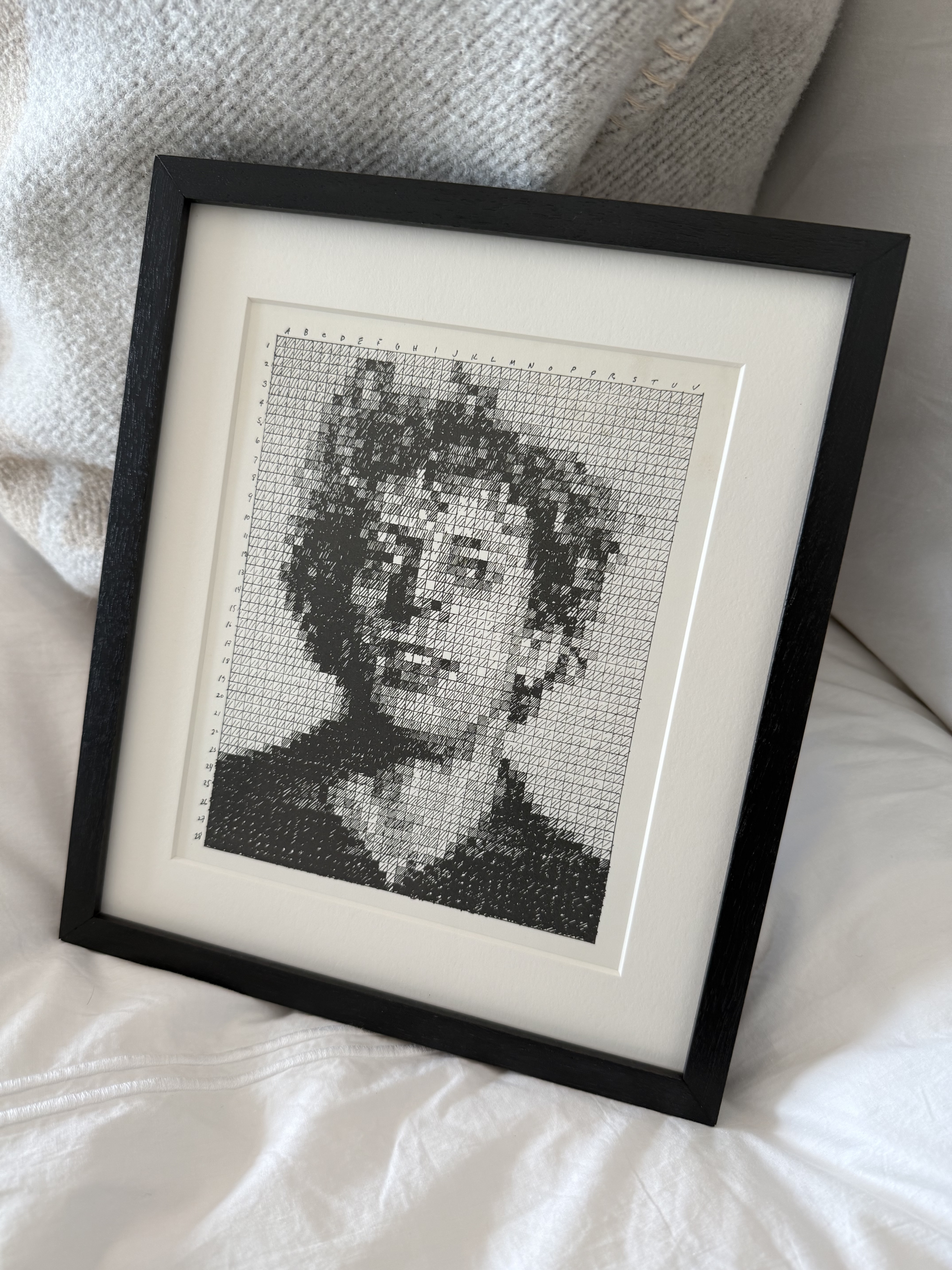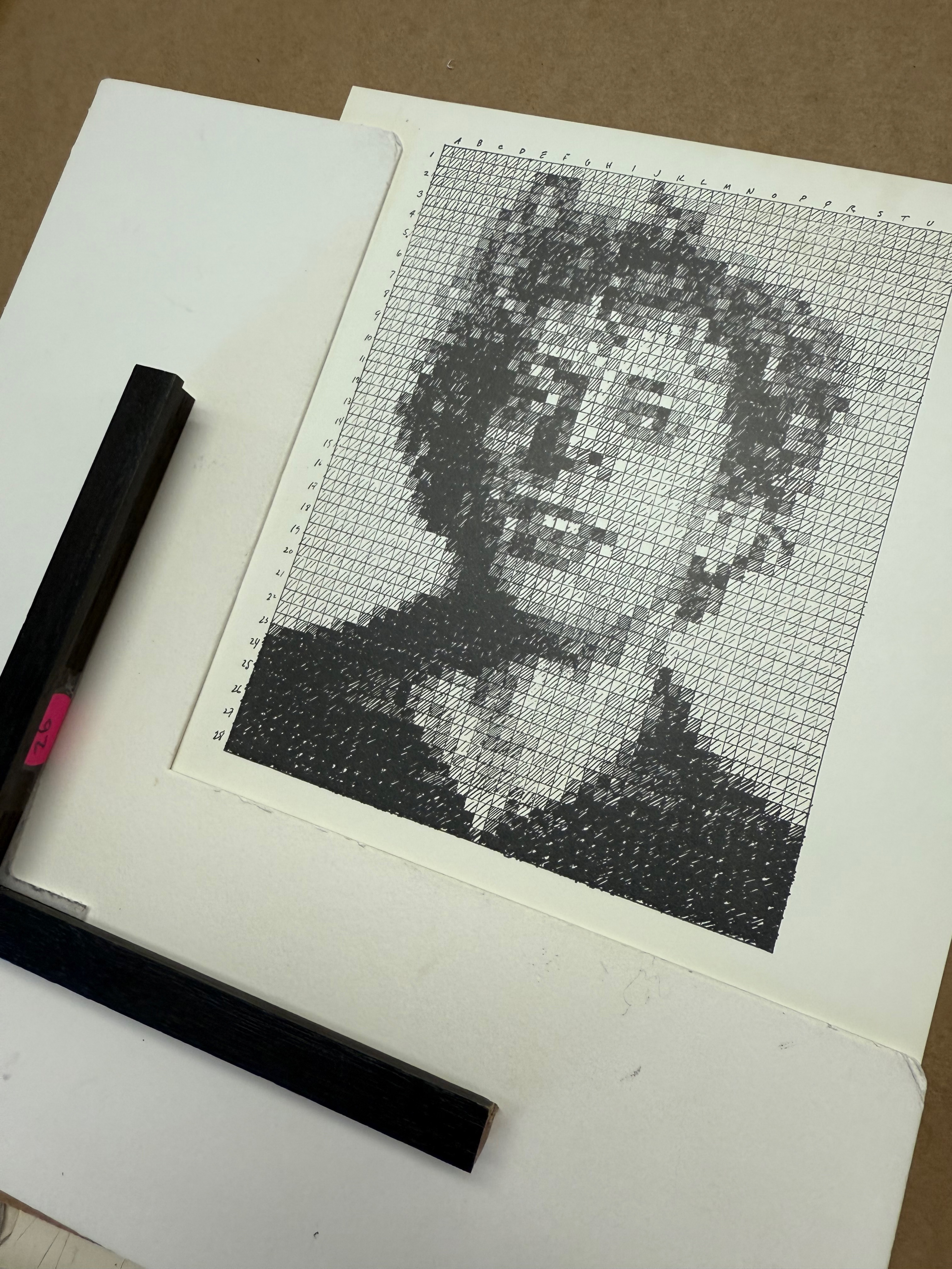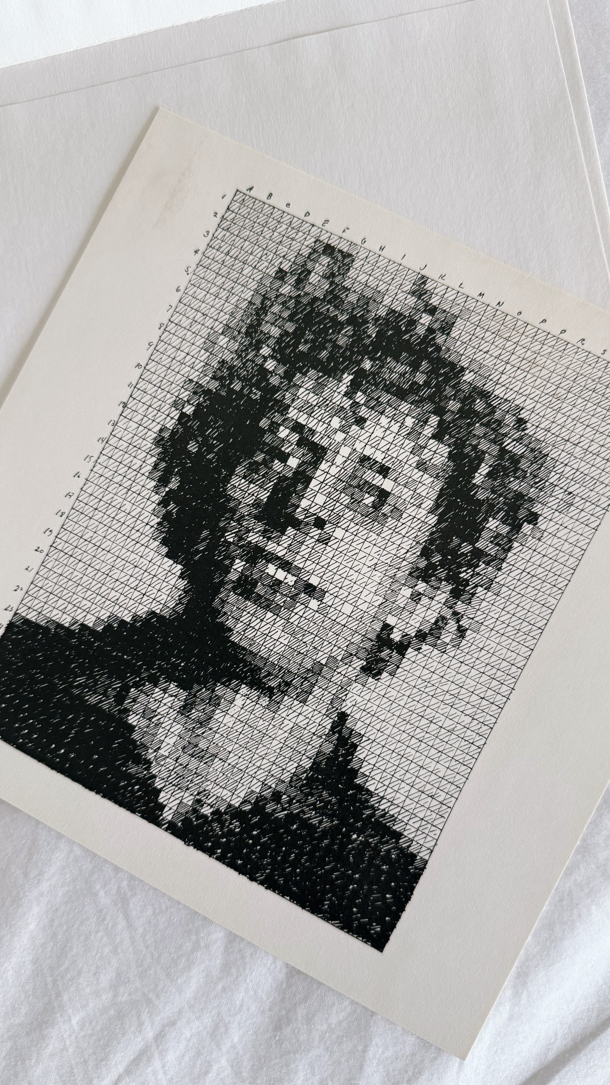 Chuck Close's experimental approach to printmaking is evident in this 1976 rubber stamp work, part of his systematic exploration of the grid-based portrait format that would define his career. Executed during a pivotal period when Close was developing his signature photorealist technique, the piece demonstrates his interest in mechanical reproduction processes and their relationship to photographic imagery. Edition 946 of 1000, this impression was produced by A. Colish Press using a stamp created by Unity Engraving Company, and represents one of the final examples from the estate of publisher Bob Feldman, having never previously entered circulation.