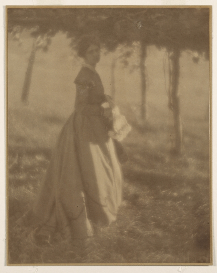 Gentle graphite additions enhance the atmospheric quality of the platinum print, creating an intimate garden scene that epitomizes White's romantic pictorialist style.