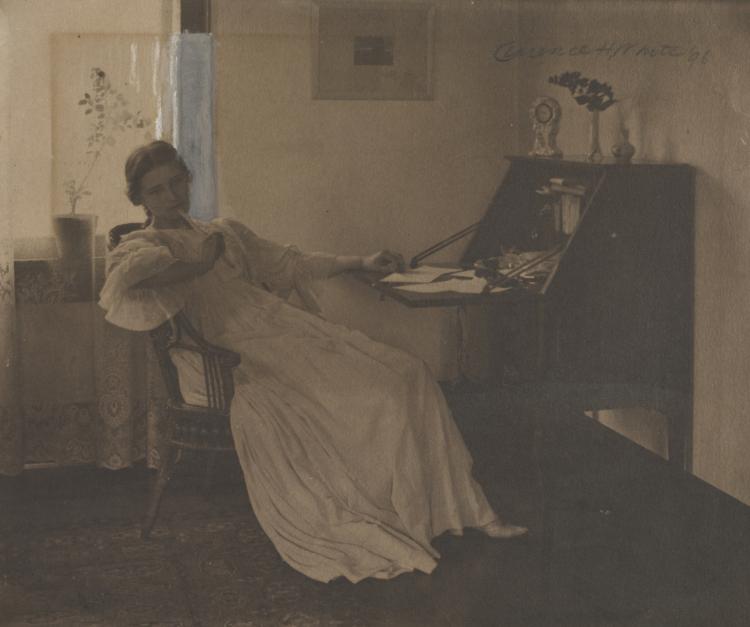 Enhanced with gouache, the contemplative portrait demonstrates White's early mastery of the platinum process and his talent for capturing psychological depth.
