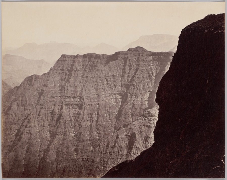 Exemplifies the 19th-century British fascination with India's landscape, presenting the Western Ghats through the sharp detail and tonal range characteristic of albumen printing.