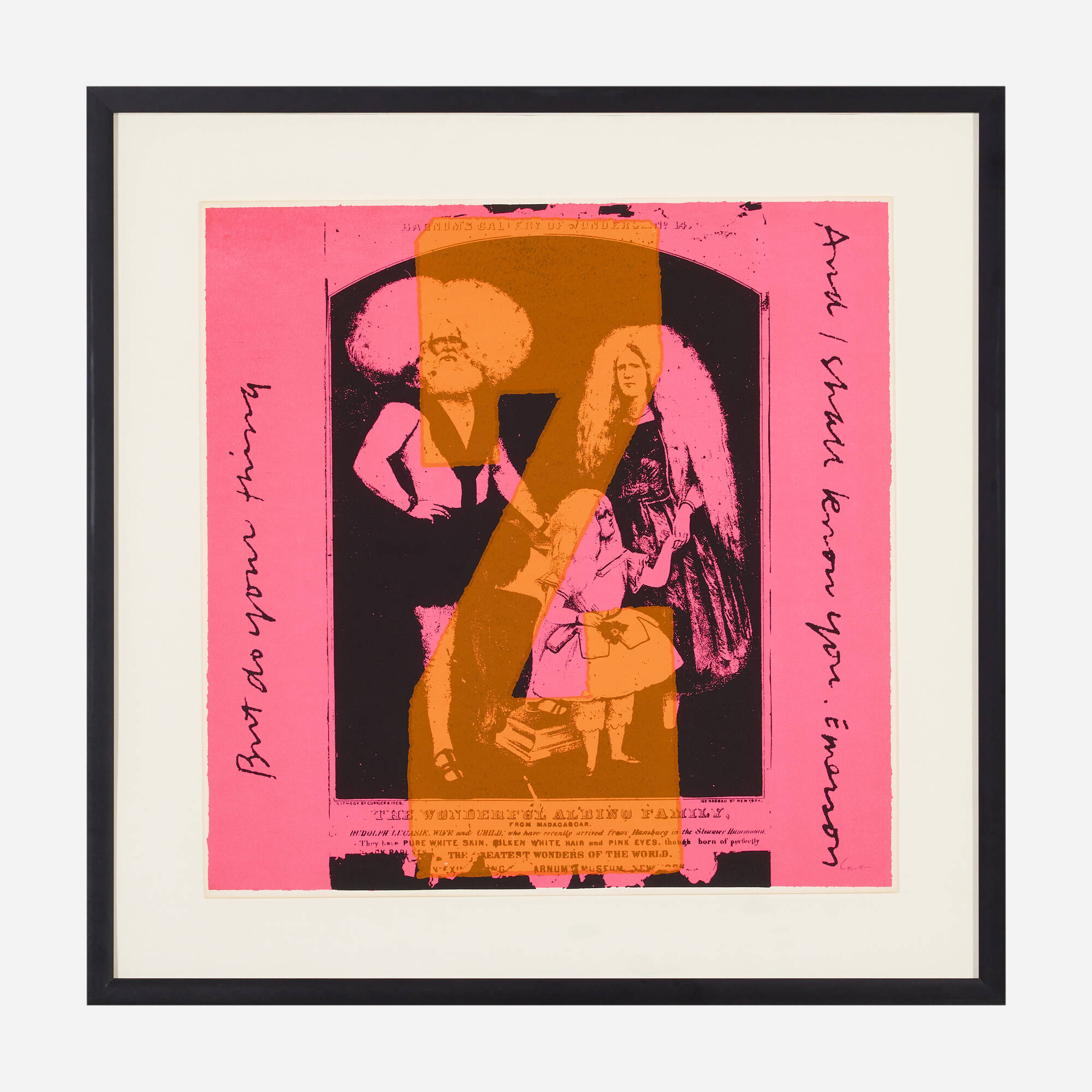 This vibrant screenprint from 1968 features the letter Z as part of Corita Kent's playful Circus Alphabet series. The work exemplifies Kent's bold use of color and her ability to transform simple letterforms into dynamic visual statements. Kent, a nun and artist, was known for her integration of spiritual and pop art sensibilities. The composition demonstrates her commitment to making art accessible and joyful. This piece reflects the optimistic spirit of 1960s American art and design.