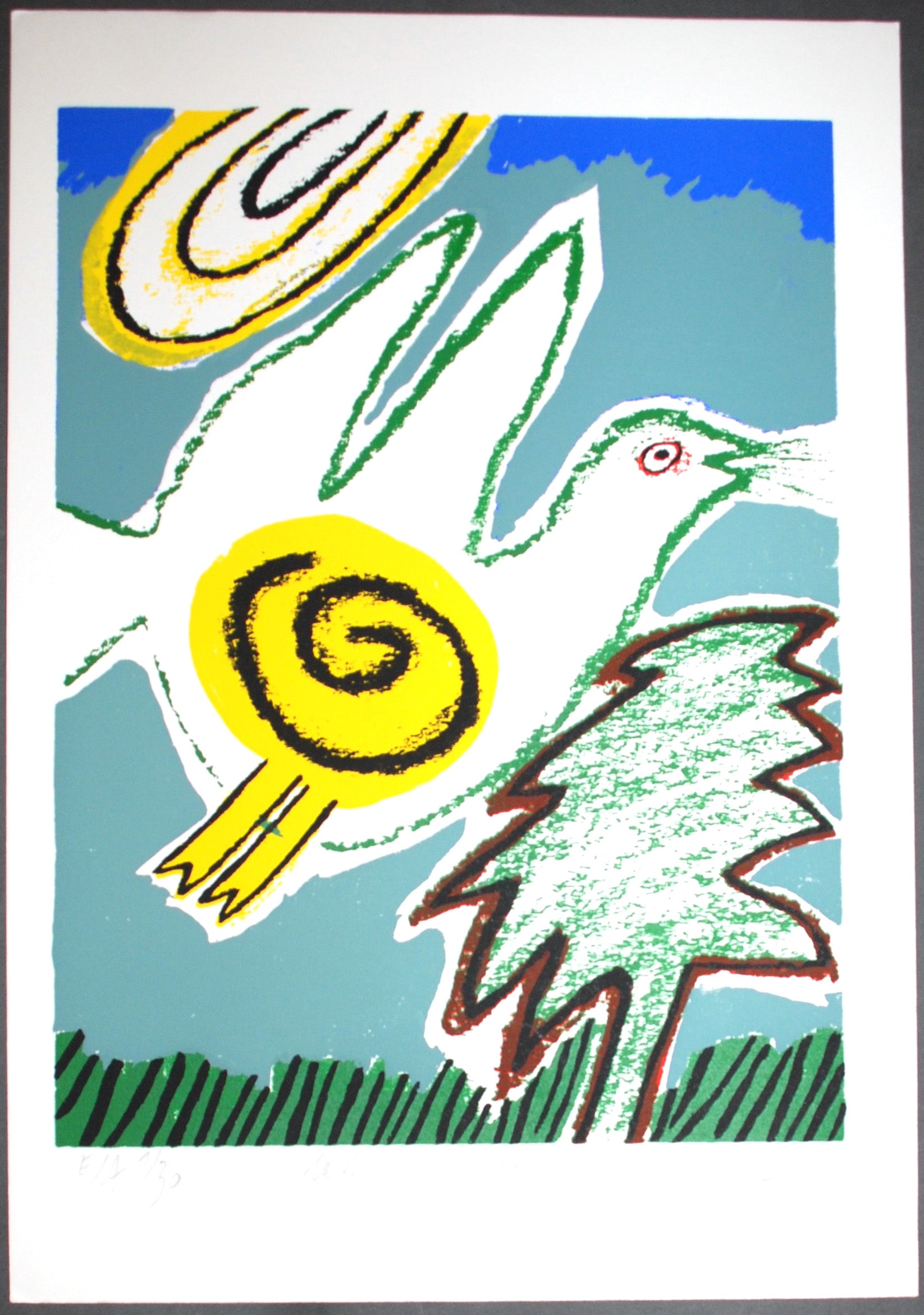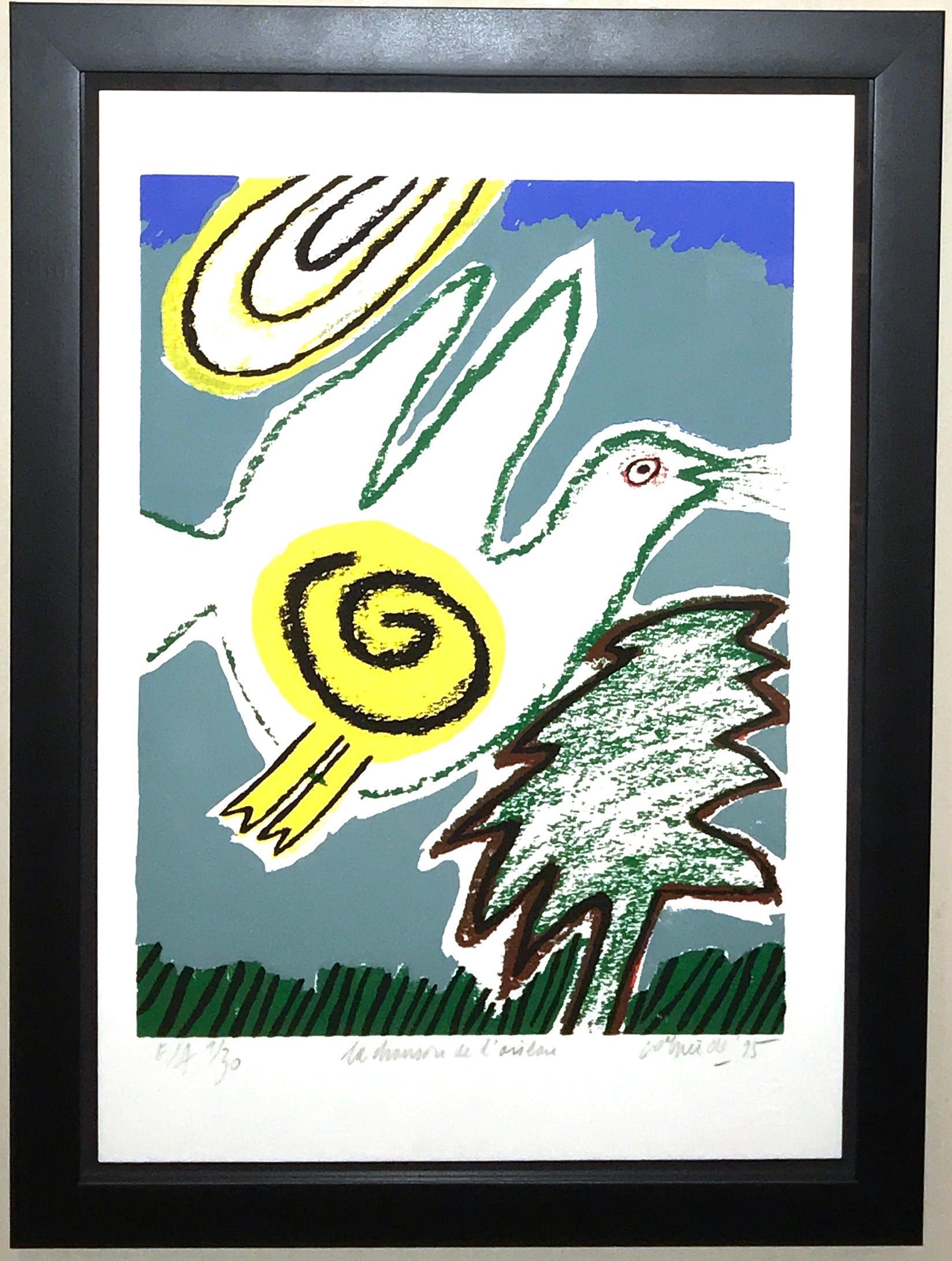 - Corneille, Corneille La Chanson De L'oiseau, Signed, Original lithograph, 16 3/4" x 22 3/4" Framed Size, 11 3/4" x 15 3/4" Image Size