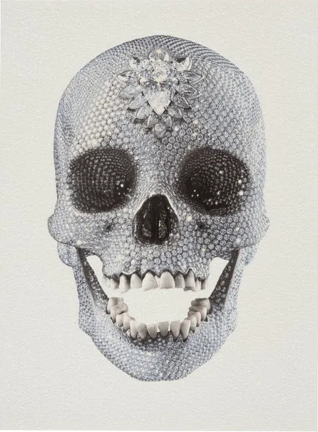 Edition, Monochrome, Living Artist, Blue Chip, Bold, Conceptual, Skull, Memento Mori, Mixed Media, Luxury, Screenprint, Ornamental, White, Silkscreen Print, British, Diamond Dust, Figurative, Contemporary