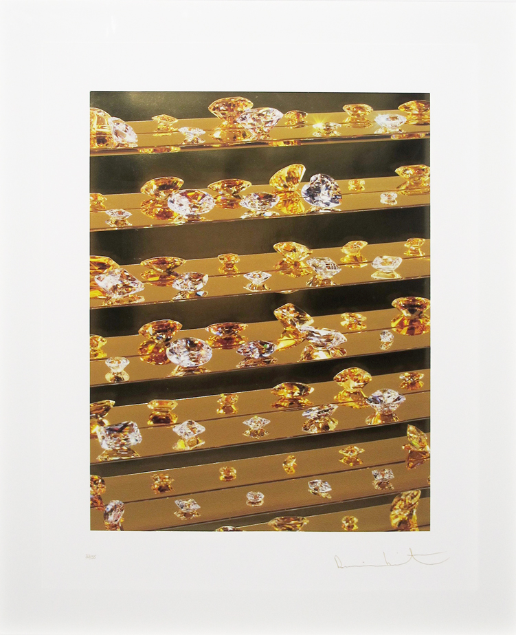 Part of Hirst's exploration of mortality and beauty, "Gold Tears" employs luxurious gold foilblock against the artist's signature spot motif, rendered through precise inkjet and glaze techniques on premium Hahnemühle paper. The work exemplifies Hirst's ability to transform conceptual themes of loss and desire into visually seductive objects that question the relationship between aesthetic pleasure and existential anxiety.