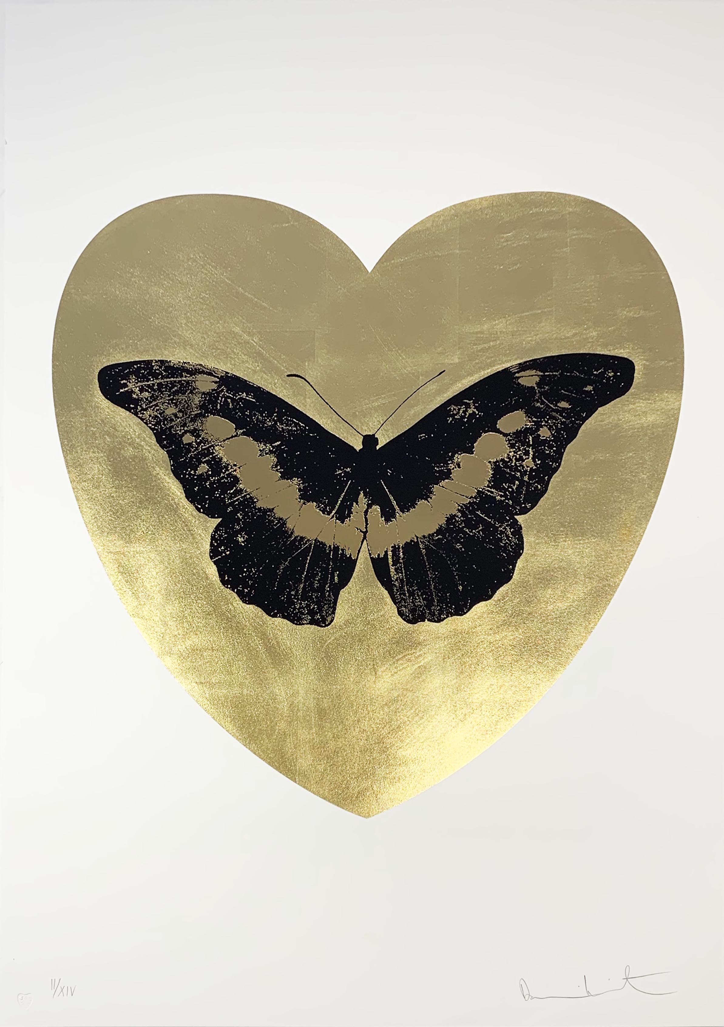 This silkscreen print exemplifies Hirst's exploration of love and mortality through his signature spot painting vocabulary, rendered in luxurious gold leaf and foil that elevates the work's material presence. The limited edition of 14 demonstrates Hirst's continued engagement with printmaking as a means to distill his conceptual concerns into intimate, collectible formats.