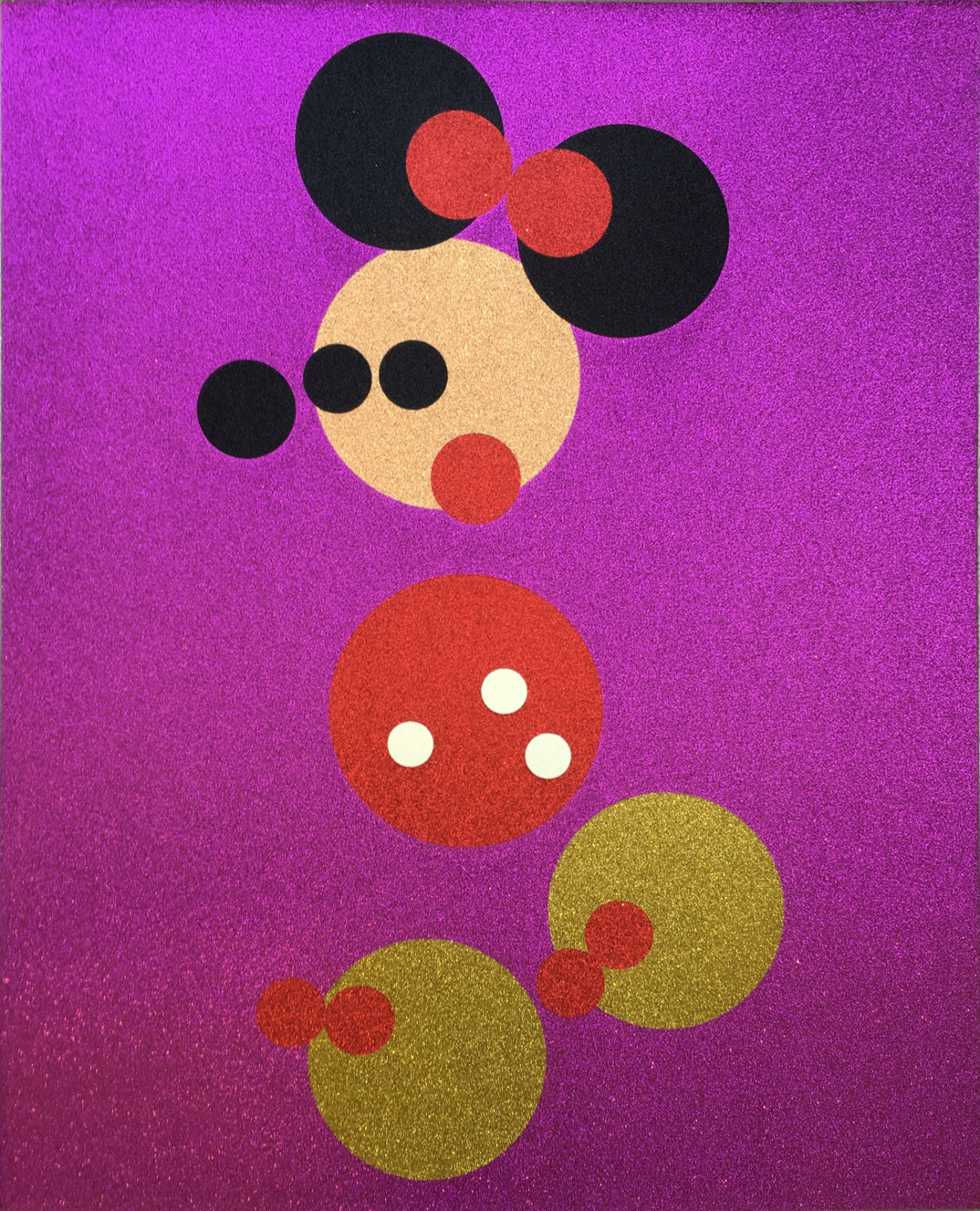 This 2016 screenprint exemplifies Hirst's exploration of pop culture iconography through his signature decorative aesthetic, transforming Disney's beloved Minnie Mouse with shimmering glitter treatment. Part of a limited edition of 50, the work demonstrates the artist's continued investigation into the intersection of childhood nostalgia, consumer culture, and mortality themes.